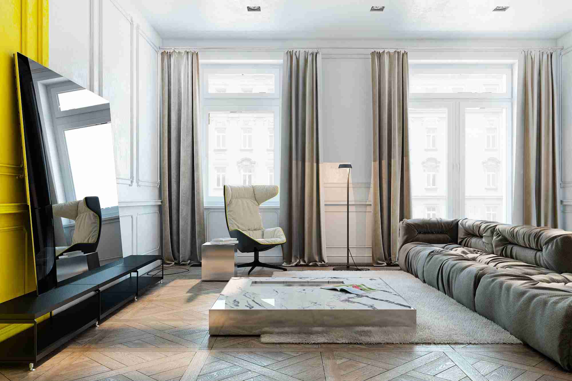 第一次看到厨房搭配这种颜色,大家可以准确的叫出它的名字吗?它就是"拿波里黄",梨熟的时候皮硬不好次,梨快要熟的时候,饱含水分,咬一口清脆可口,而那个时候的颜色就是“拿波里黄”用这样的颜色装饰出来的厨房,你无法想象那样的美好。